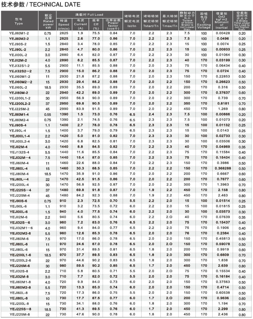 YEJ series electromagnetic brake motor is an improved product of YEJ series, which meets the requirements of national standard JB/T6456-2010, and the electrical performance meets the technical standards of YE2 series motor.